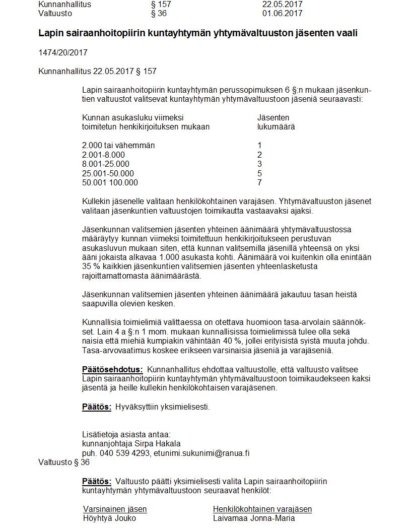 Pöytäkirja 01.06.2017 Pykälä 36
