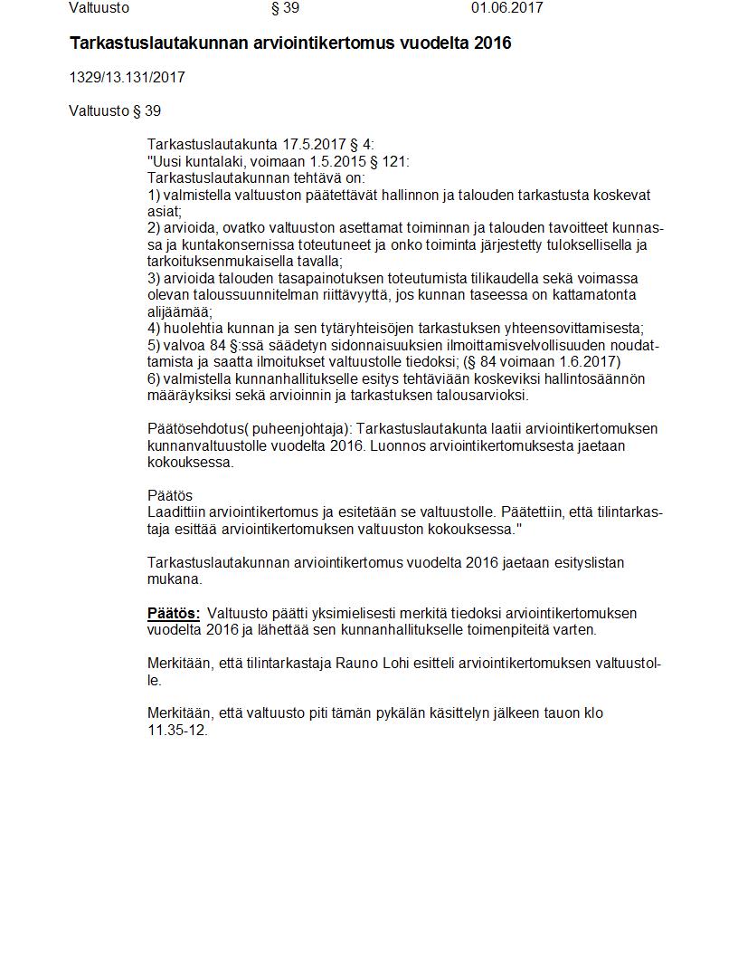 Pöytäkirja 01.06.2017 Pykälä 39