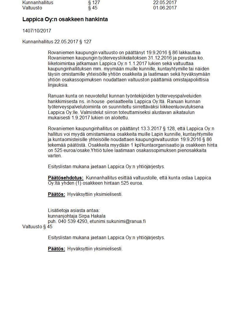 Pöytäkirja 01.06.2017 Pykälä 45