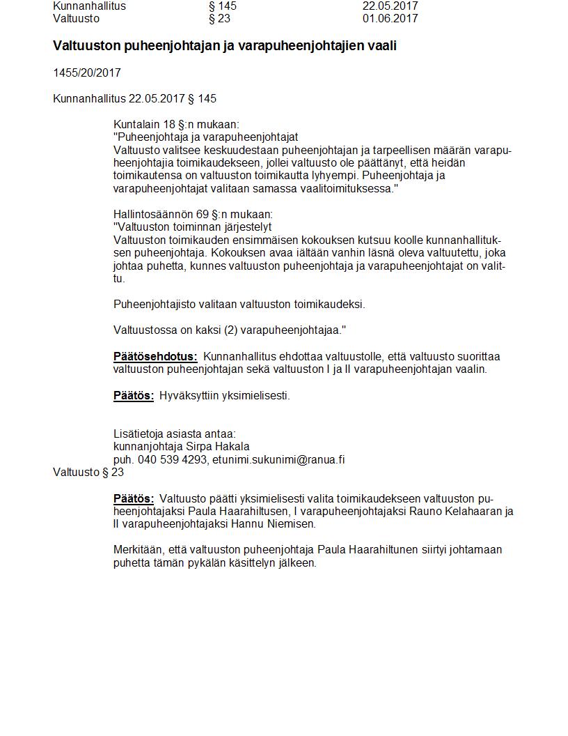 Pöytäkirja 01.06.2017 Pykälä 23