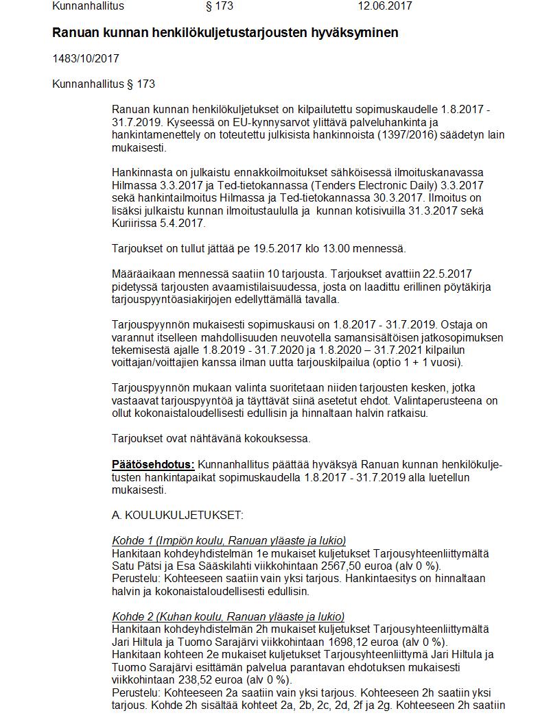 Pöytäkirja 12.06.2017 Pykälä 173