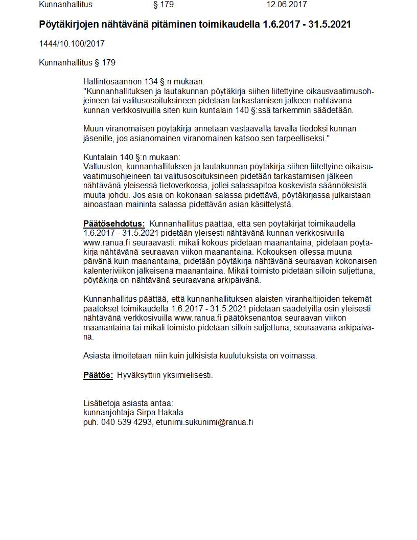 Pöytäkirja 12.06.2017 Pykälä 179