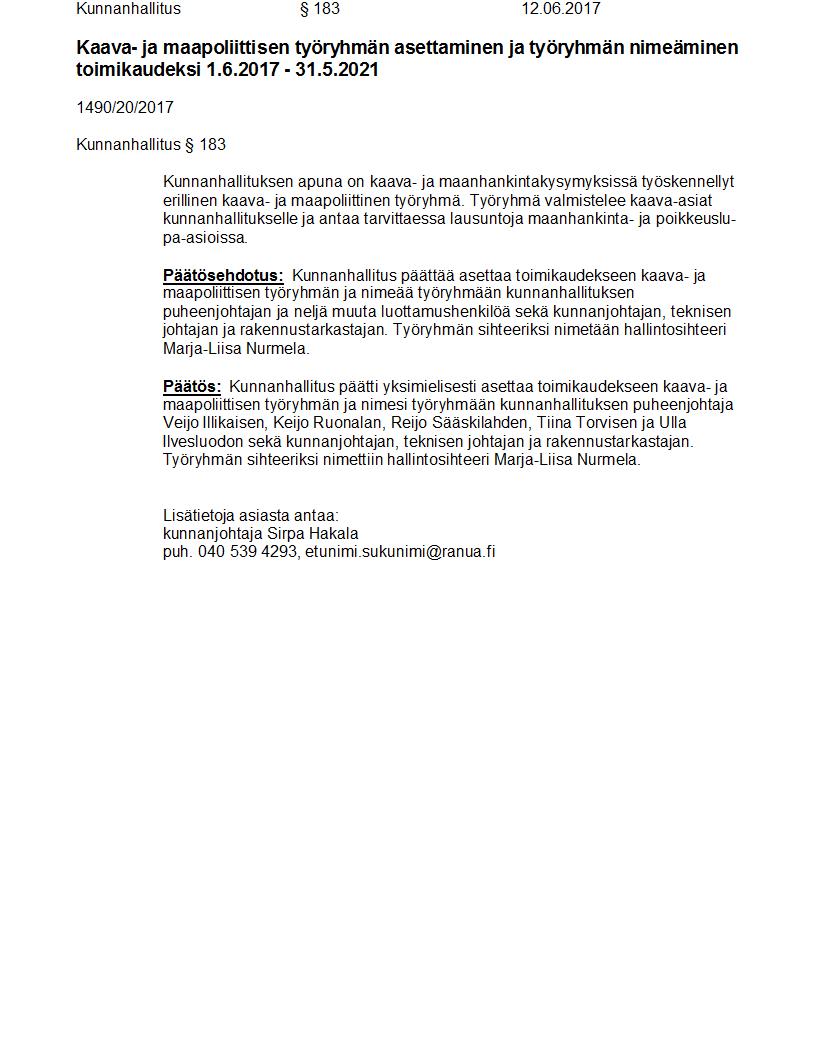 Pöytäkirja 12.06.2017 Pykälä 183