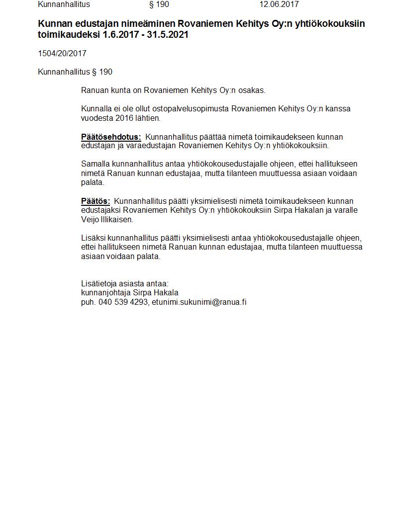 Pöytäkirja 12.06.2017 Pykälä 190