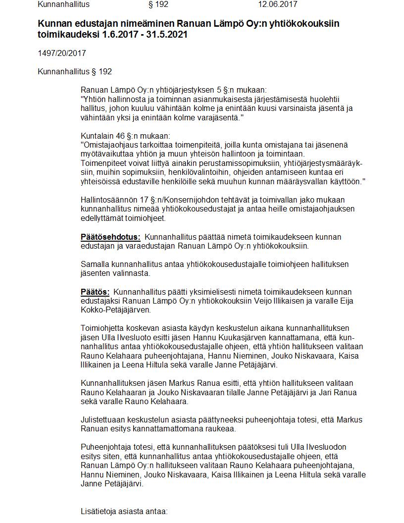Pöytäkirja 12.06.2017 Pykälä 192