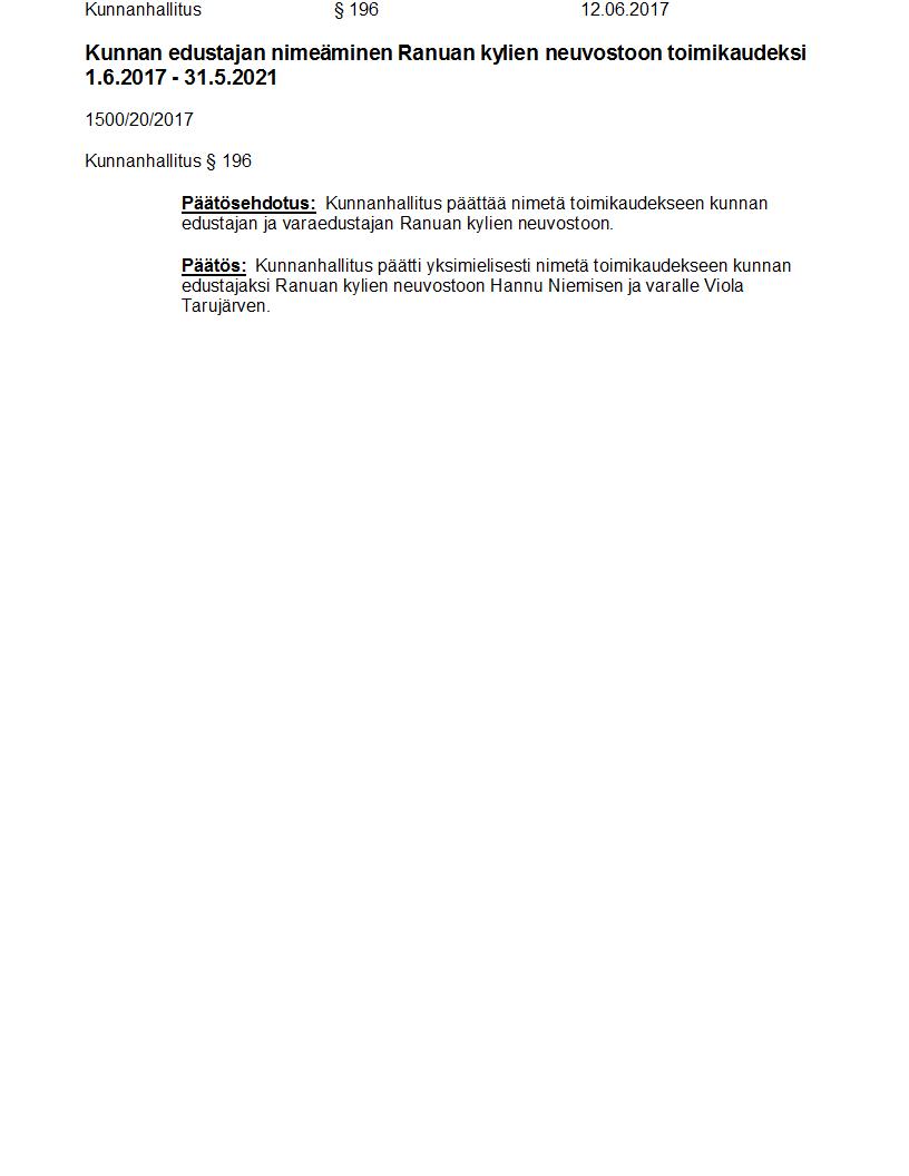 Pöytäkirja 12.06.2017 Pykälä 196