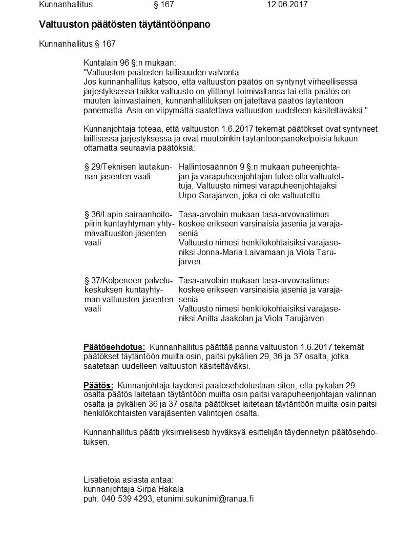 Pöytäkirja 12.06.2017 Pykälä 167
