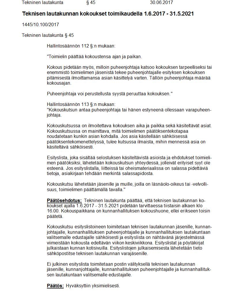 Pöytäkirja 30.06.2017 Pykälä 45