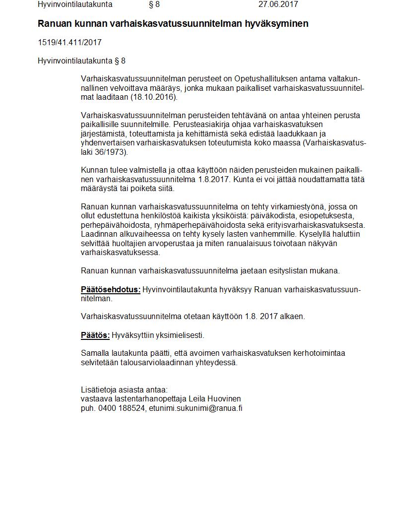 Pöytäkirja 27.06.2017 Pykälä 8