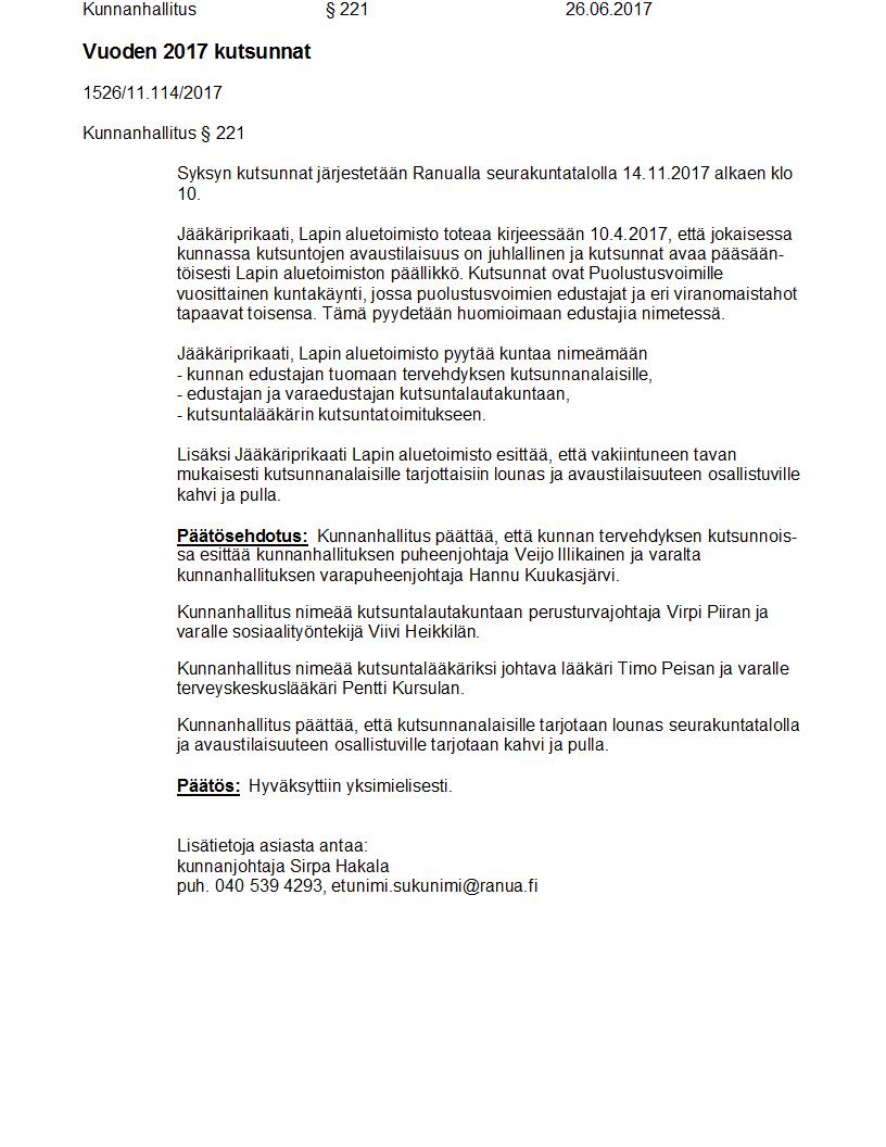 Pöytäkirja 26.06.2017 Pykälä 221
