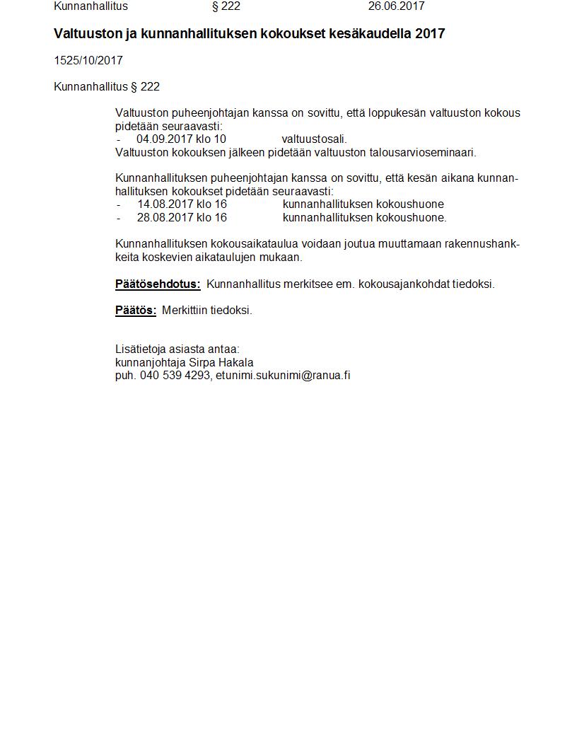 Pöytäkirja 26.06.2017 Pykälä 222