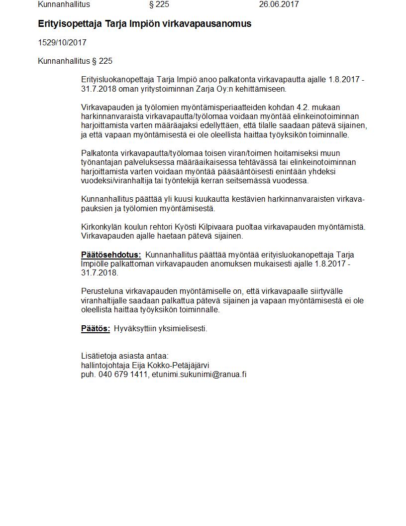 Pöytäkirja 26.06.2017 Pykälä 225