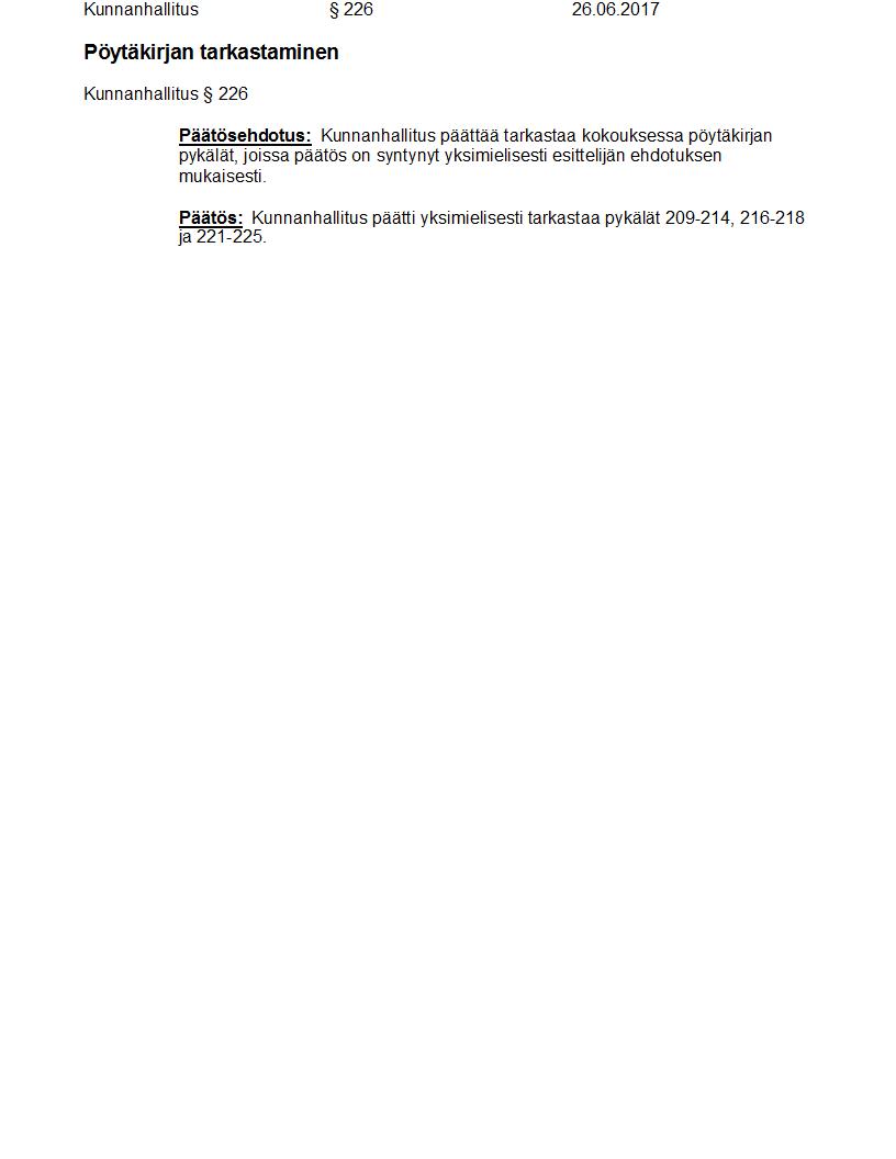 Pöytäkirja 26.06.2017 Pykälä 226