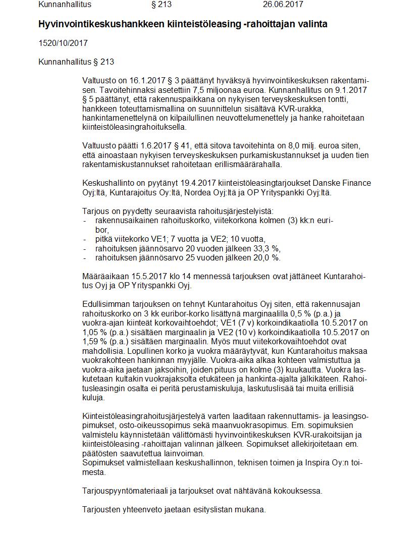 Pöytäkirja 26.06.2017 Pykälä 213