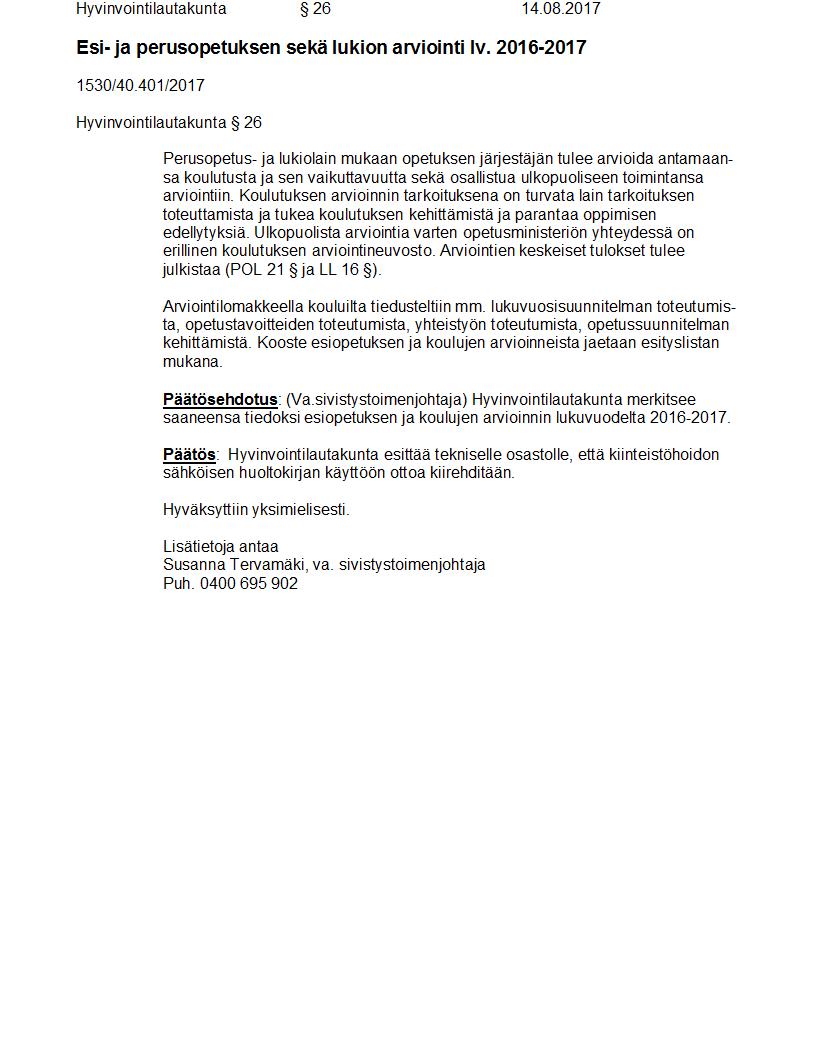 Pöytäkirja 14.08.2017 Pykälä 26