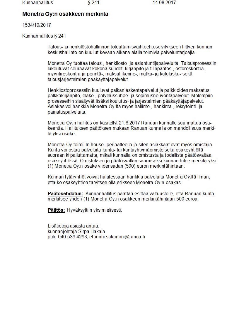Pöytäkirja 14.08.2017 Pykälä 241