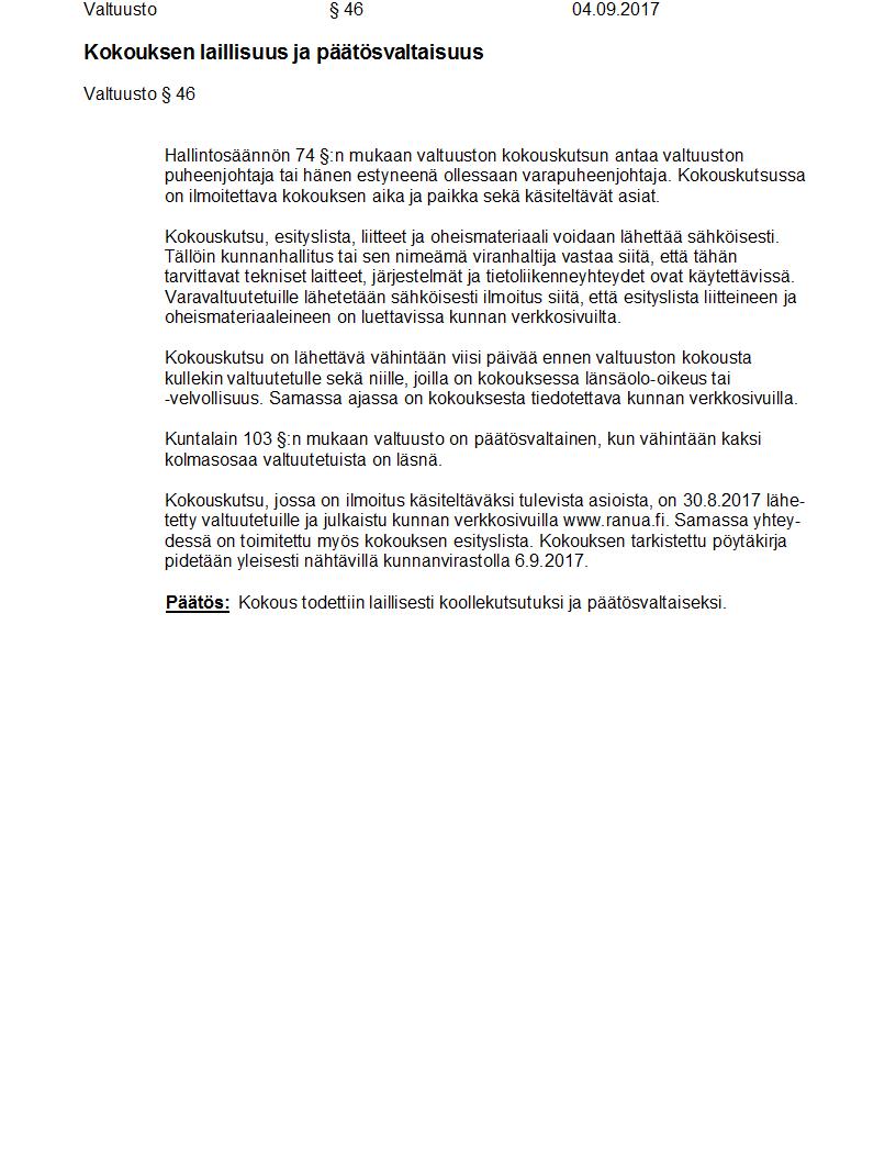 Pöytäkirja 04.09.2017 Pykälä 46