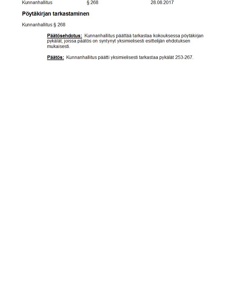Pöytäkirja 28.08.2017 Pykälä 268