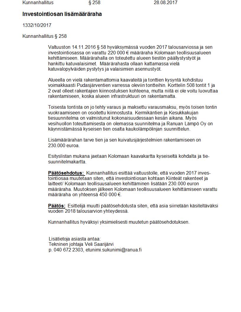 Pöytäkirja 28.08.2017 Pykälä 258