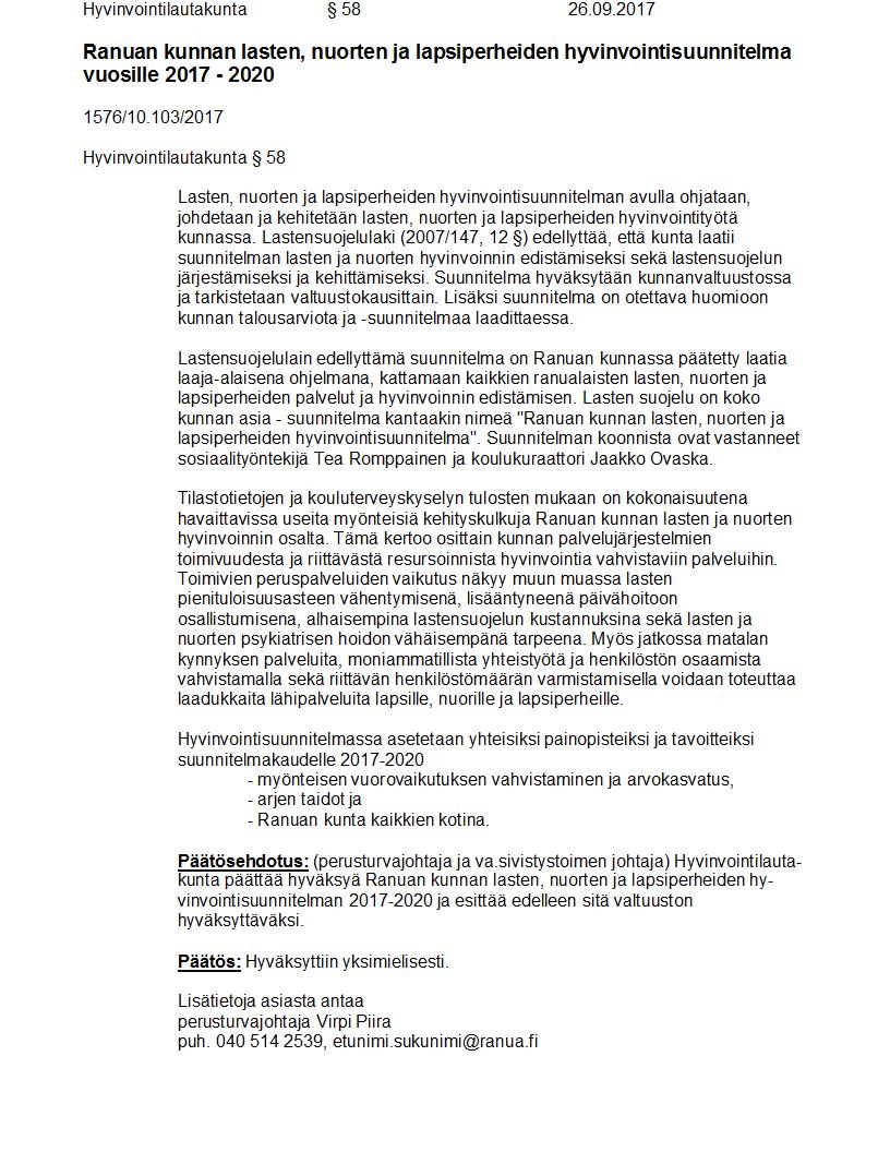 Pöytäkirja 26.09.2017 Pykälä 58