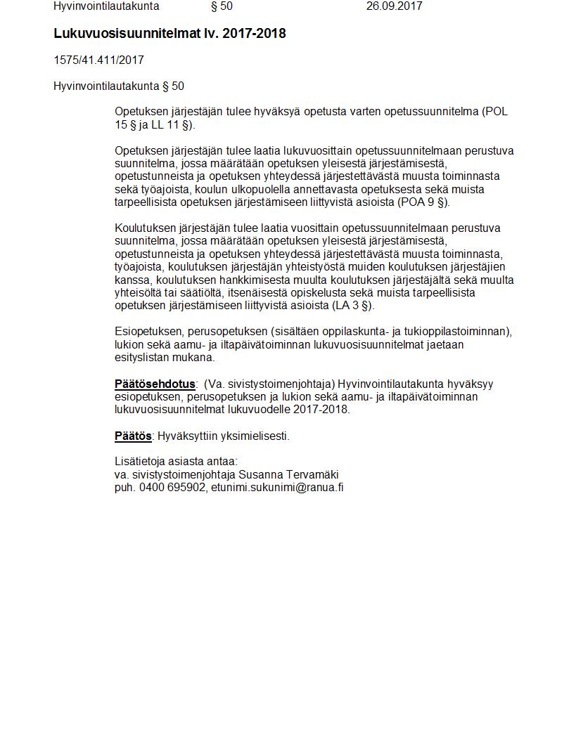 Pöytäkirja 26.09.2017 Pykälä 50