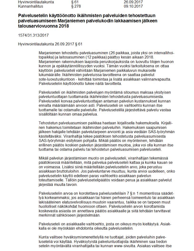 Pöytäkirja 09.10.2017 Pykälä 278