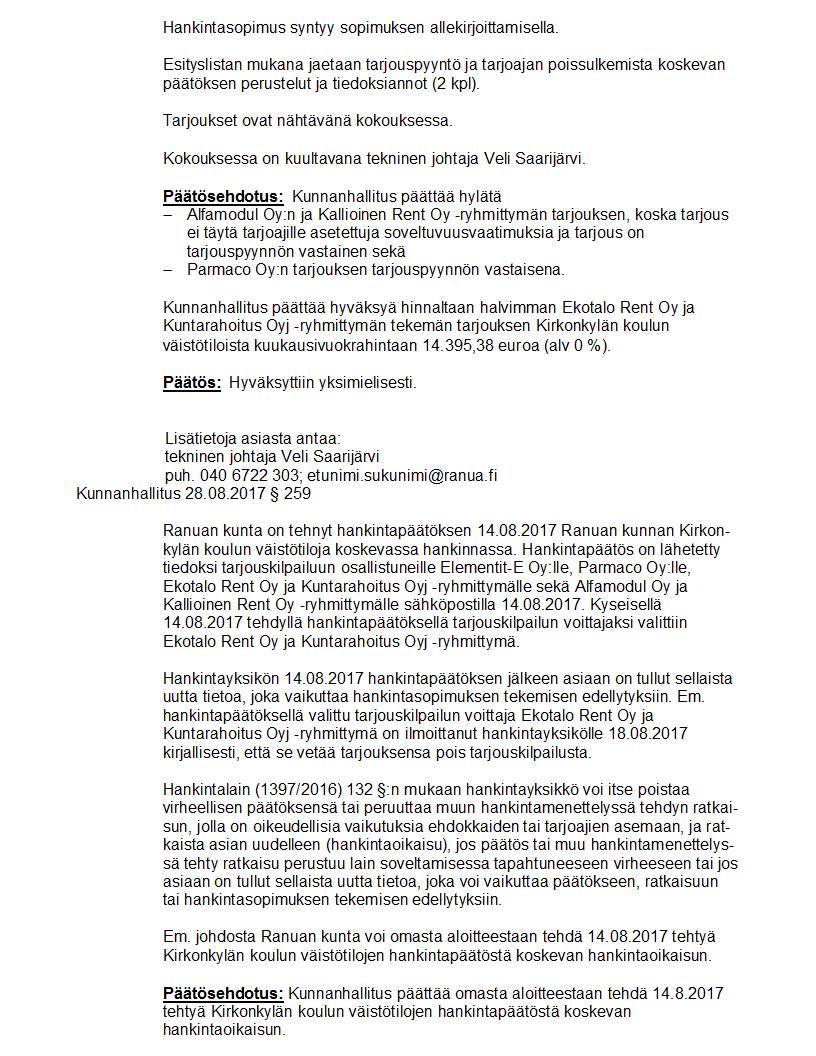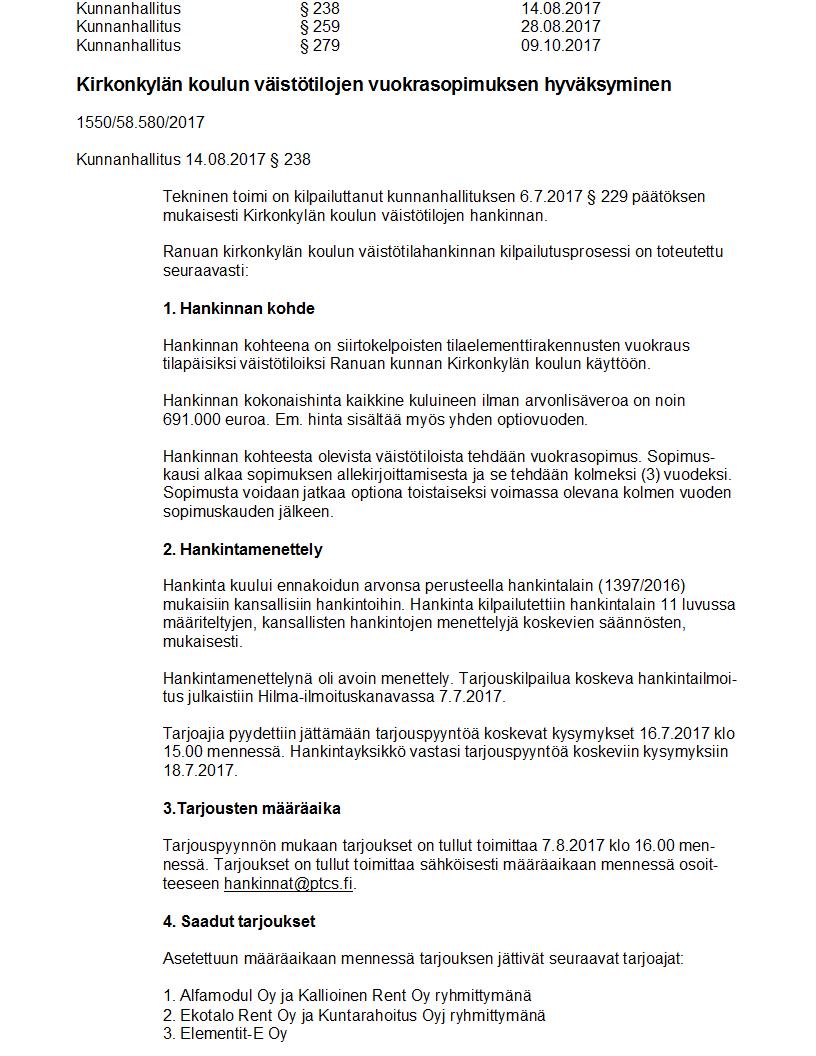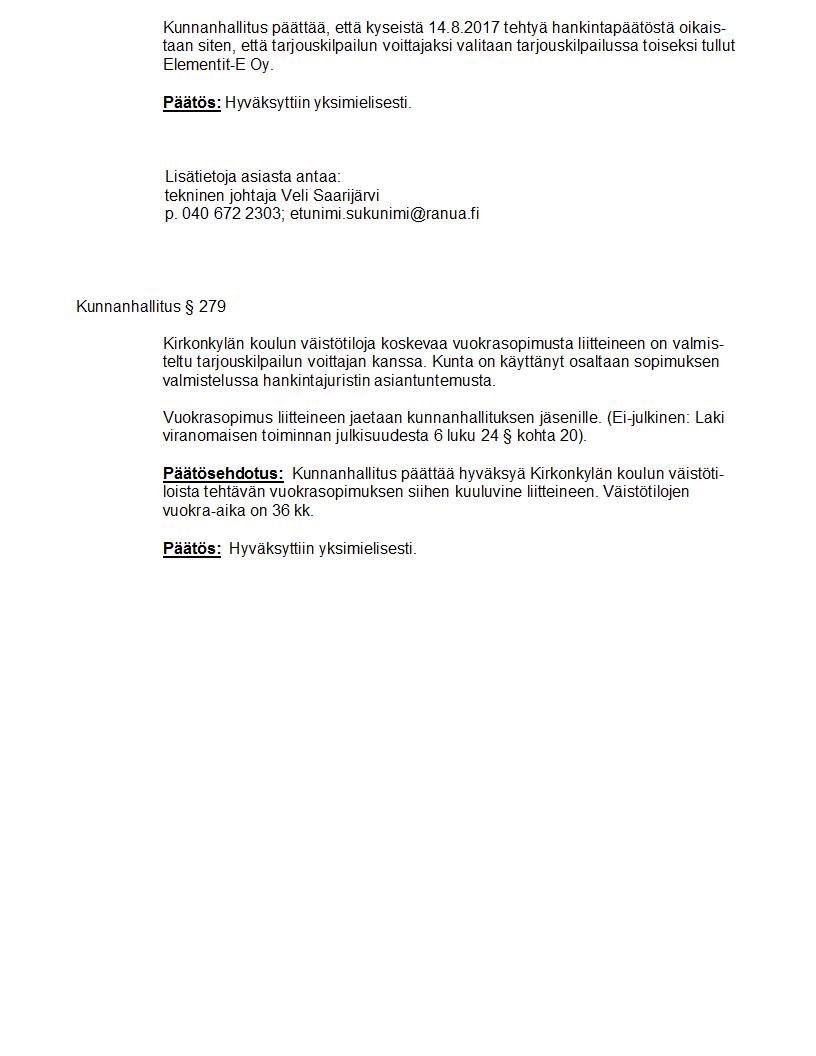 Pöytäkirja 09.10.2017 Pykälä 279