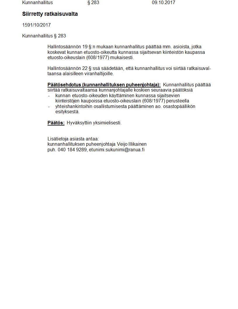 Pöytäkirja 09.10.2017 Pykälä 283