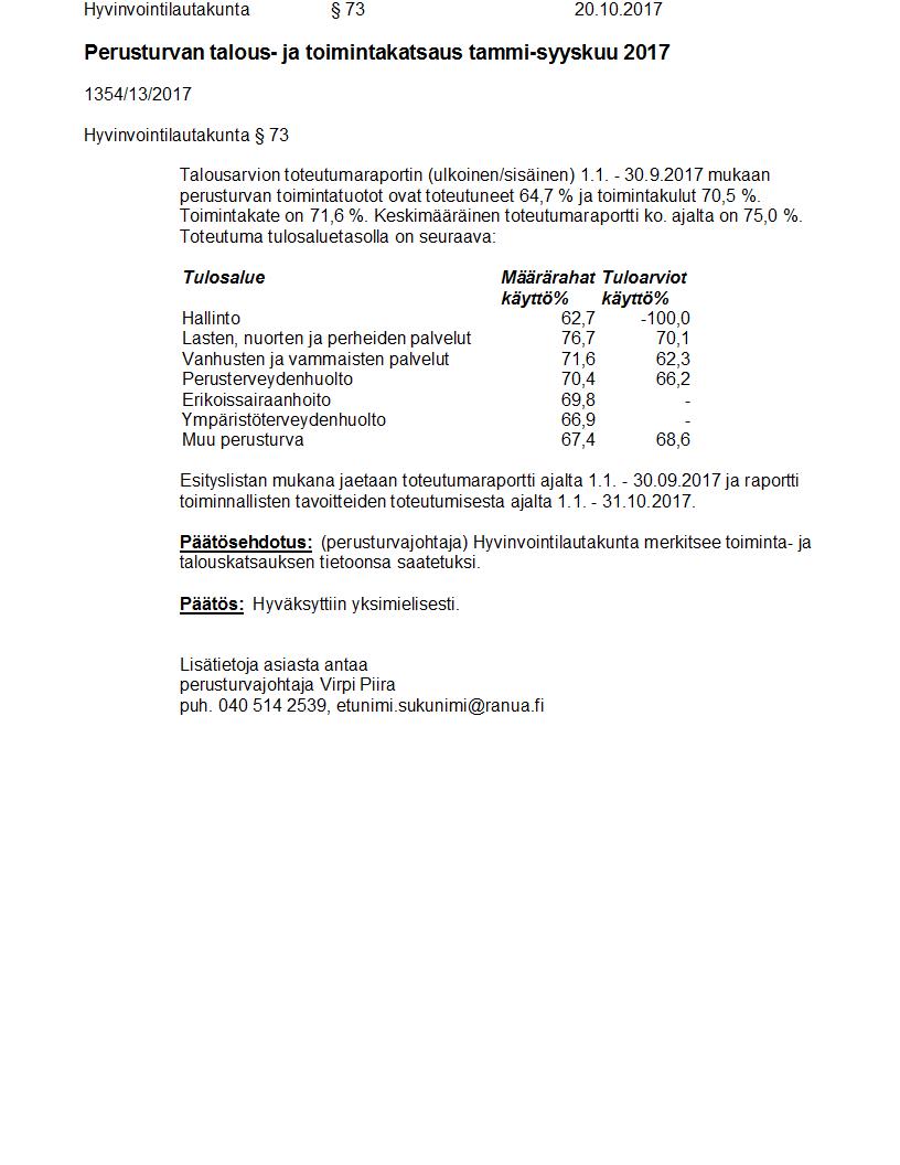 Pöytäkirja 20.10.2017 Pykälä 73