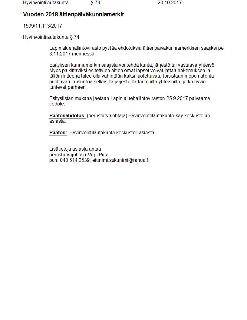 Pöytäkirja 20.10.2017 Pykälä 74