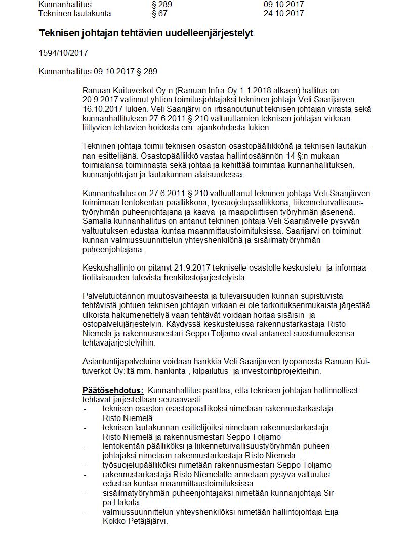 Pöytäkirja 24.10.2017 Pykälä 67