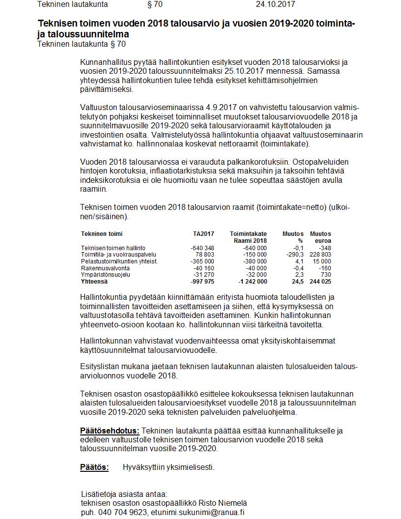Pöytäkirja 24.10.2017 Pykälä 70