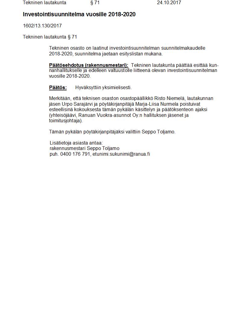 Pöytäkirja 24.10.2017 Pykälä 71
