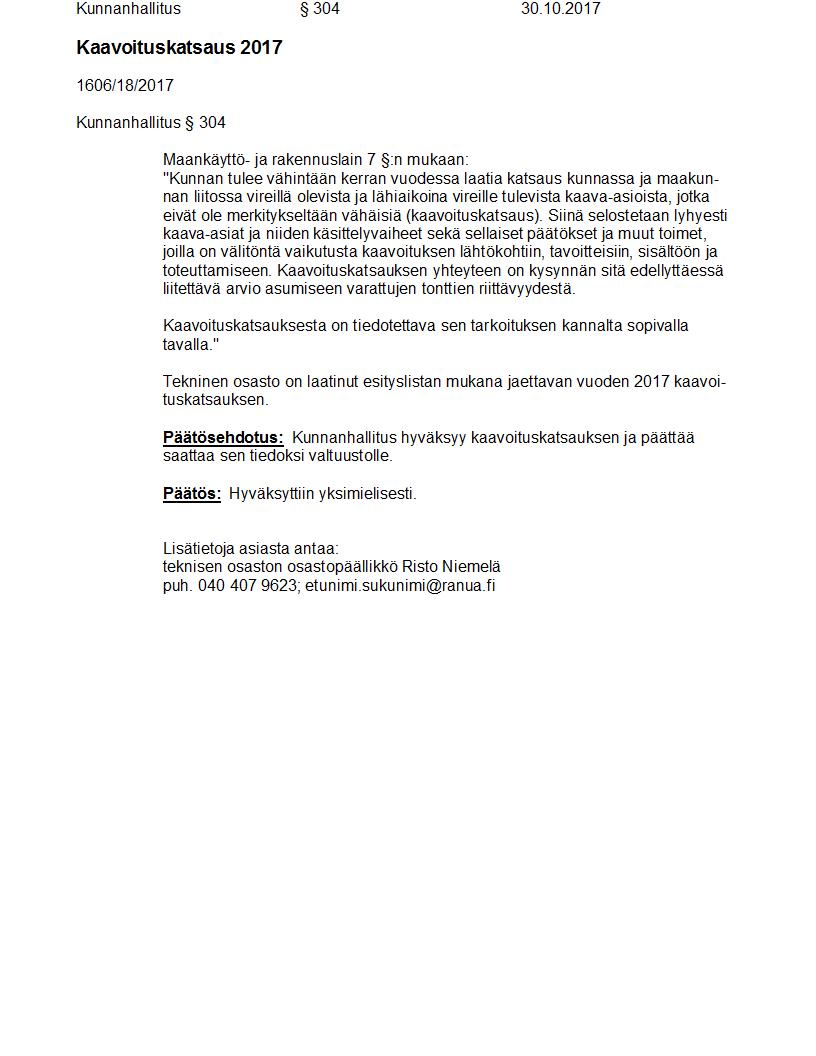 Pöytäkirja 30.10.2017 Pykälä 304