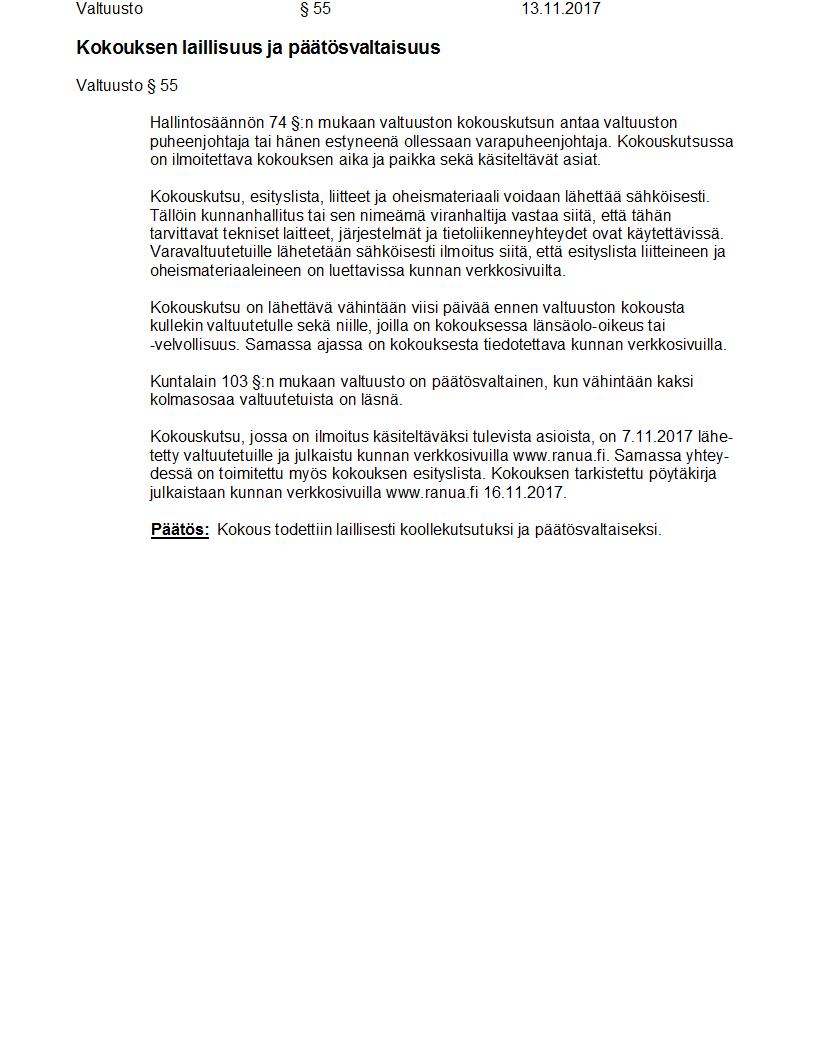 Pöytäkirja 13.11.2017 Pykälä 55