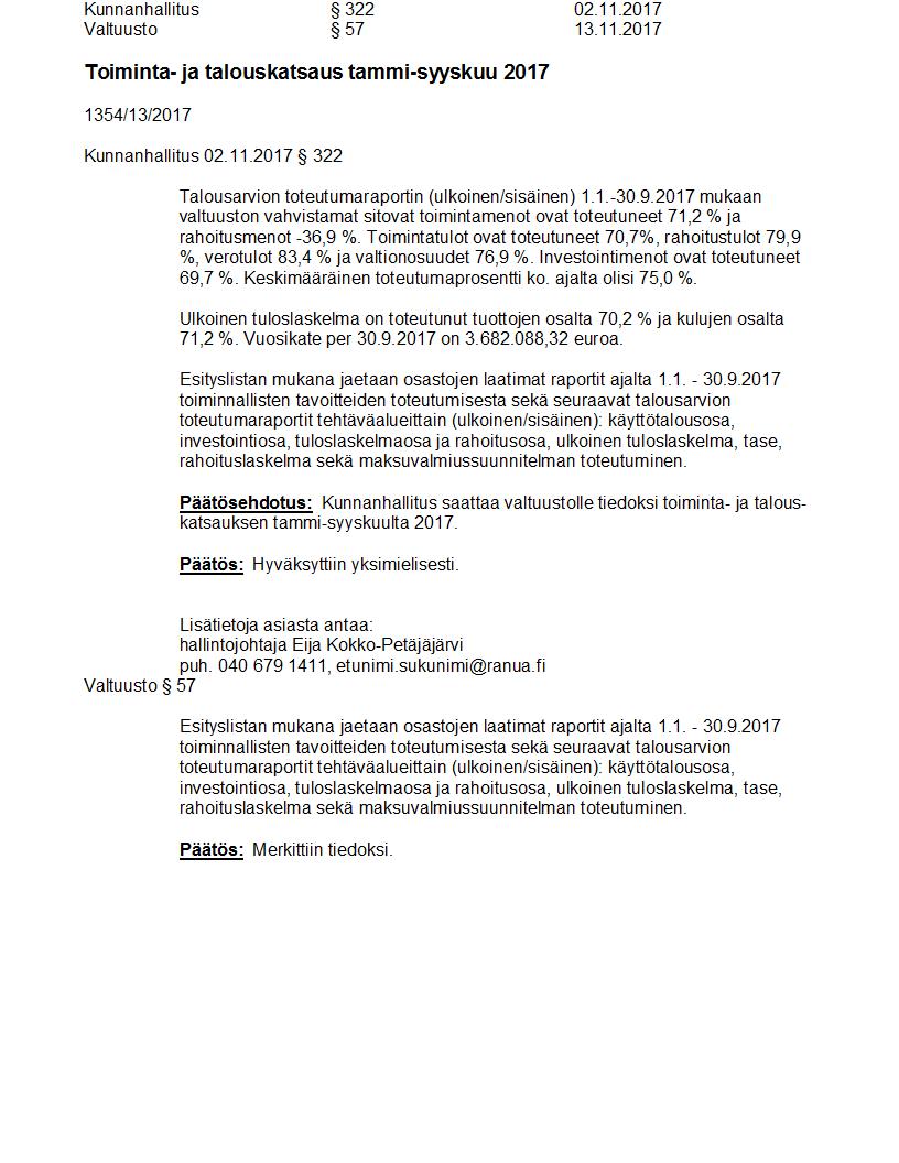 Pöytäkirja 13.11.2017 Pykälä 57