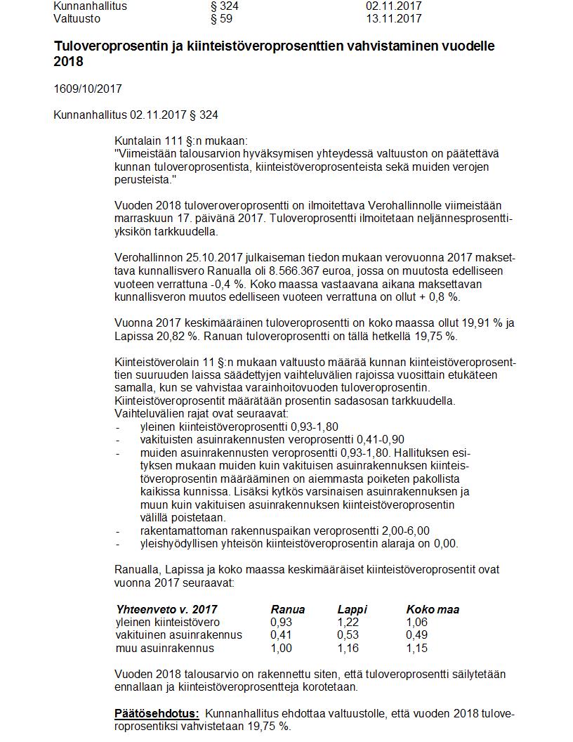 Pöytäkirja 13.11.2017 Pykälä 59