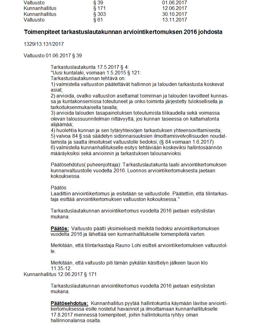 Pöytäkirja 13.11.2017 Pykälä 61