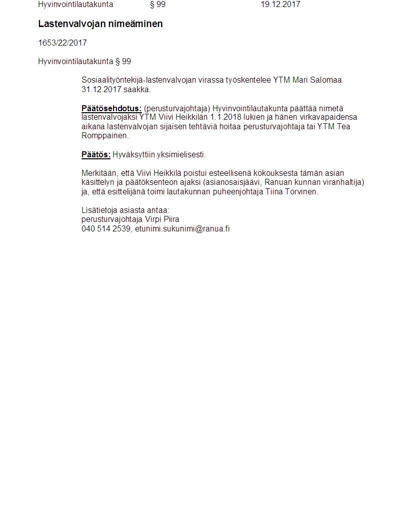 Pöytäkirja 19.12.2017 Pykälä 99