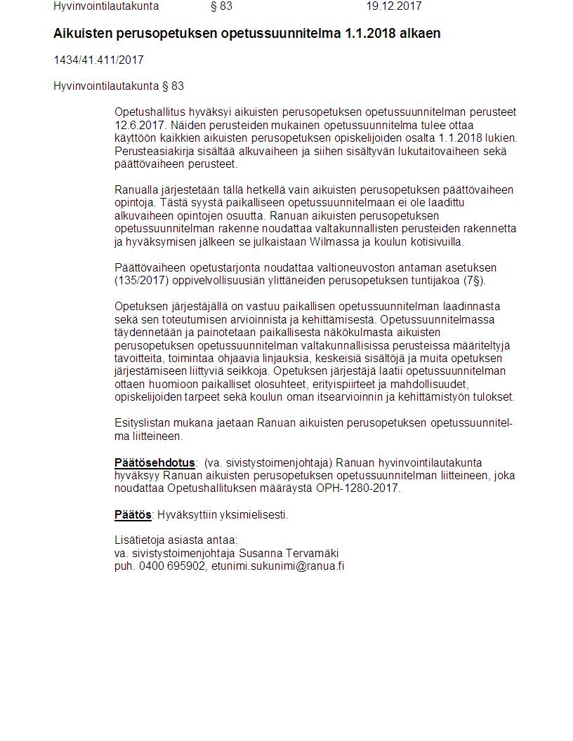 Pöytäkirja 19.12.2017 Pykälä 83