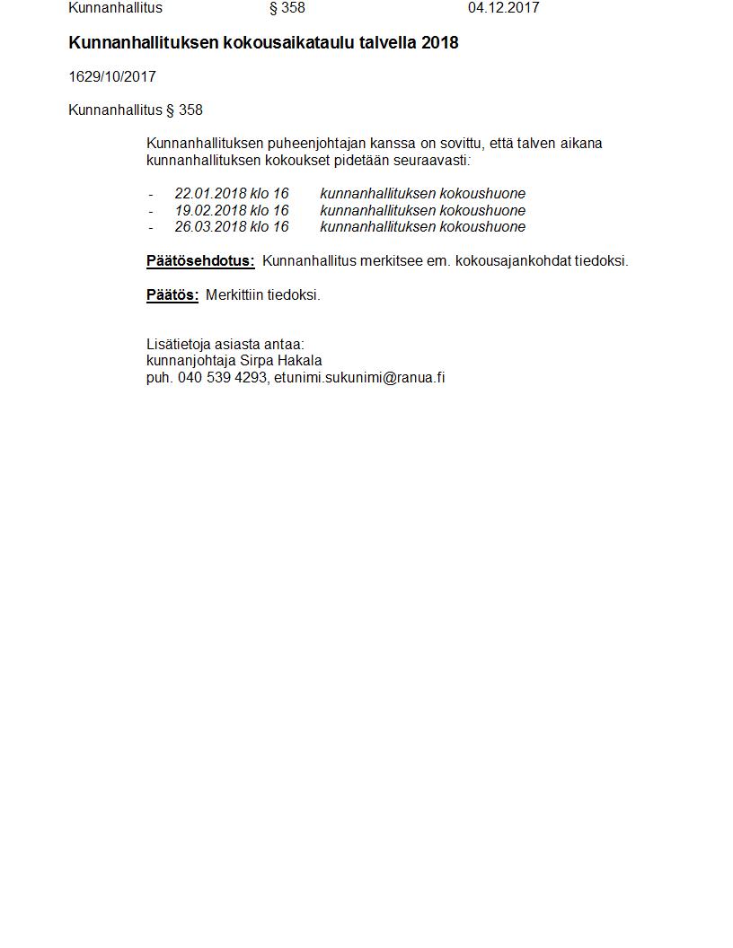 Pöytäkirja 04.12.2017 Pykälä 358