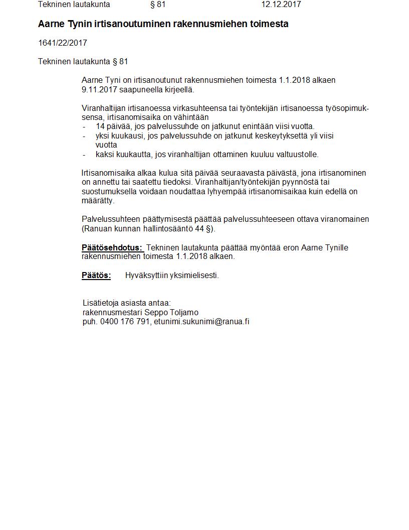 Pöytäkirja 12.12.2017 Pykälä 81