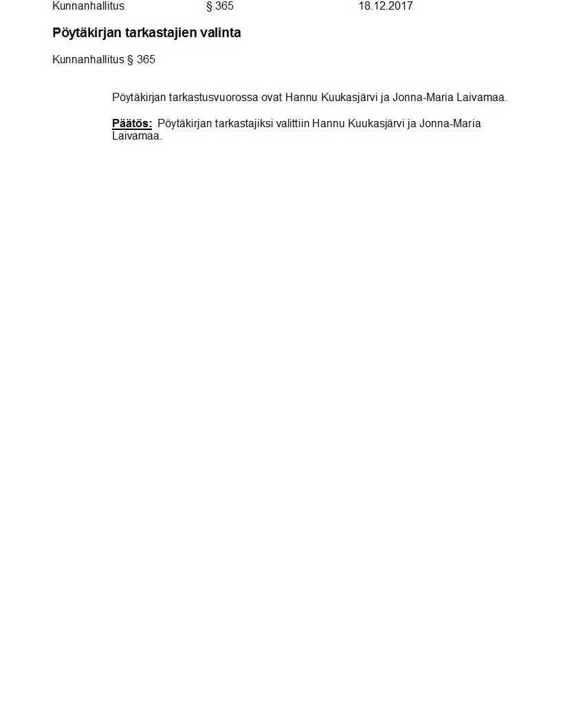 Pöytäkirja 18.12.2017 Pykälä 365