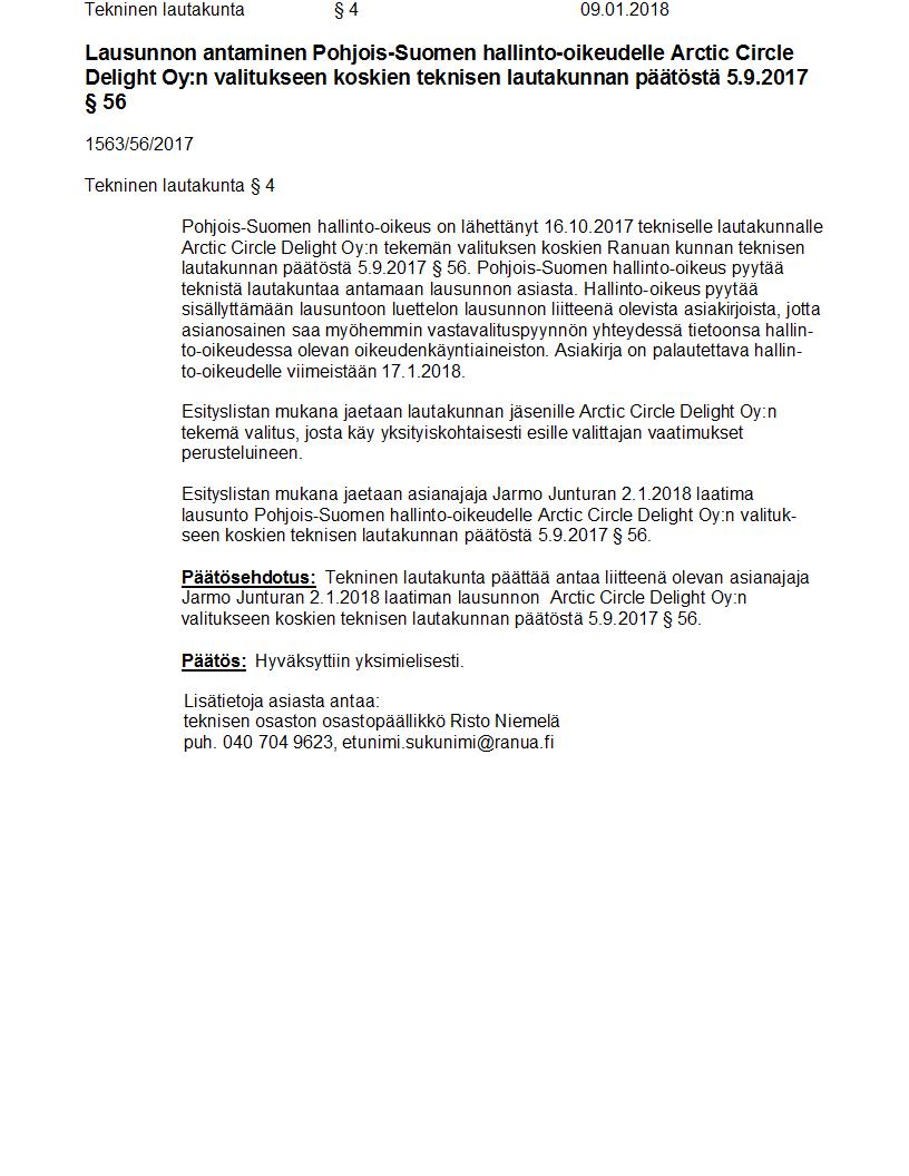 Pöytäkirja 09.01.2018 Pykälä 4