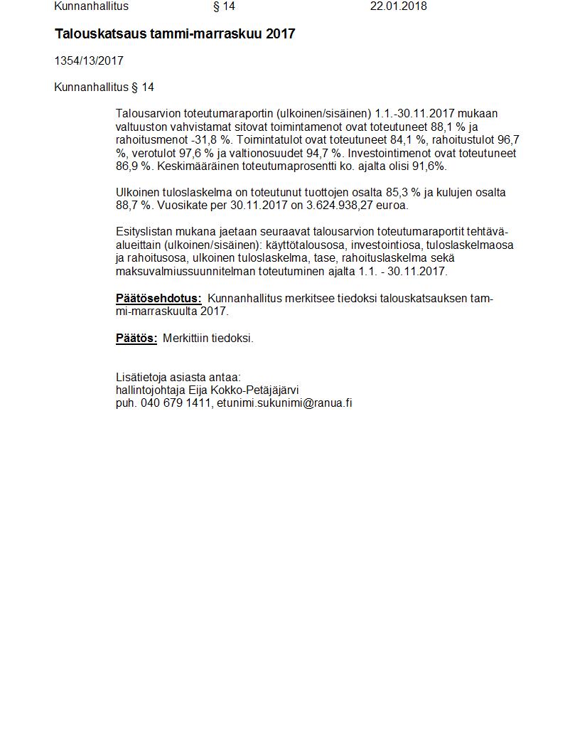 Pöytäkirja 22.01.2018 Pykälä 14