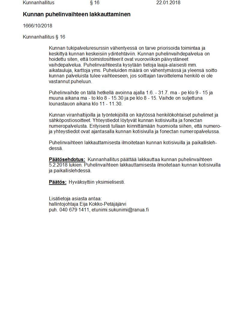 Pöytäkirja 22.01.2018 Pykälä 16