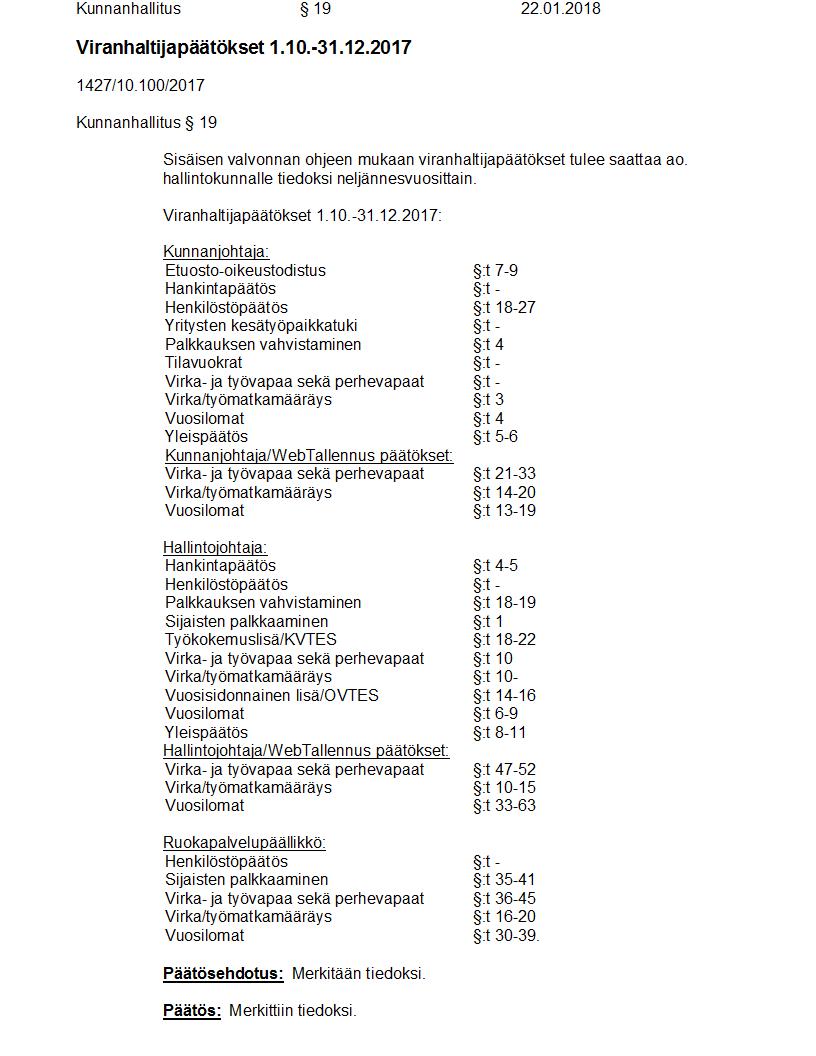 Pöytäkirja 22.01.2018 Pykälä 19