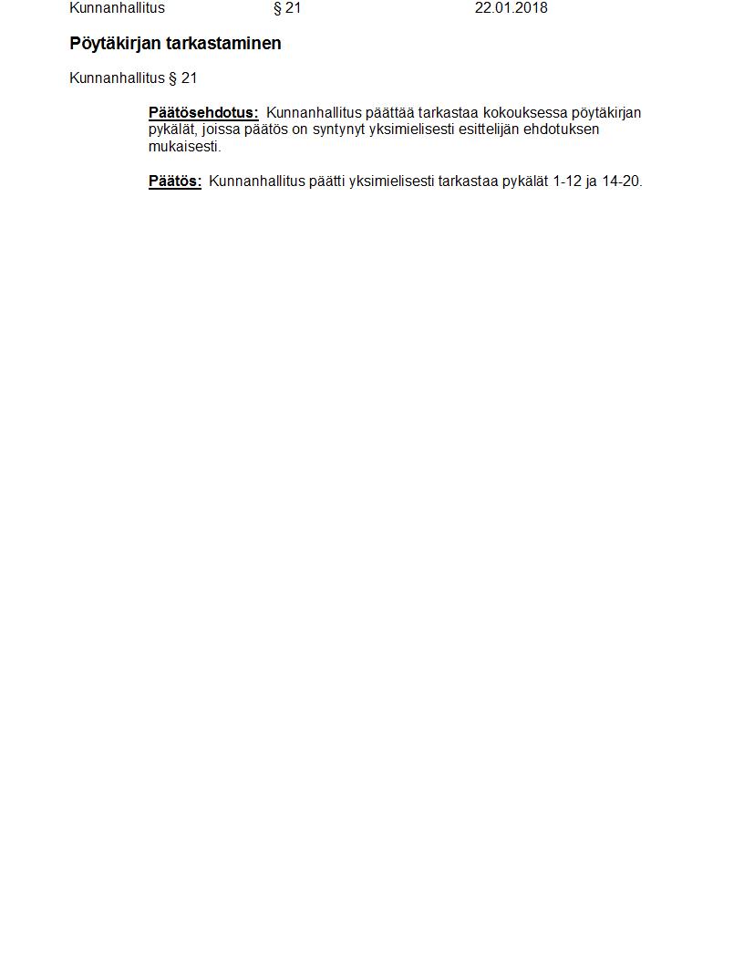 Pöytäkirja 22.01.2018 Pykälä 21