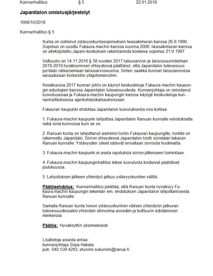 Pöytäkirja 22.01.2018 Pykälä 5