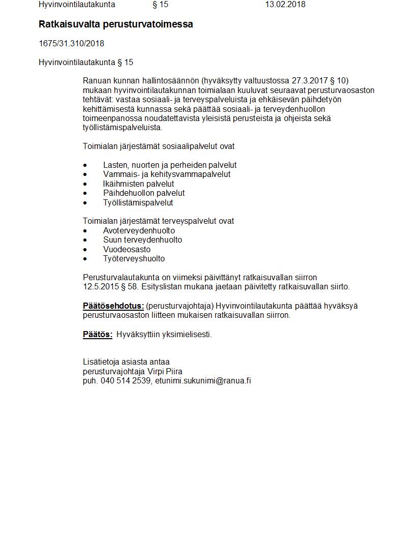Pöytäkirja 13.02.2018 Pykälä 15